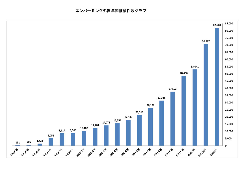(エンバーミング処置年間推移件数)